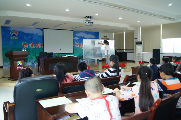 7月8日,下午1点30分,横杨社区“四海之家”阳光假日学校的小朋友们已经在教室里坐好,每个人手里拿到了两张彩色的纸。本次学生们所要学习的内容是绘画,而带领学生们绘画的老师是来自大碶小学的顾磊磊老师。