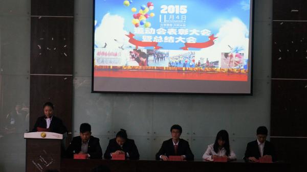 学生会主席金华剑作第一季度学生会工作报告,学长对海天学院学子在运动会上表现表示肯定,同时用军训的辛苦来激励我们保持良好的作风。学生会副主席王煜阳对各部门表示鼓励,同时指出运动会前期准备工作的不足,并提出加以完善的方案。运动员代表段家豪对运动员的努力和拉拉队的热情表示感谢。海天学院校管会尹榕坚作校园吉尼斯工作总结时提出不抛弃不放弃的比赛理念。技艺指导中心主任何超超作教工趣味运动会工作总结,表示老师用行动告诉大家运动使人更年轻。
