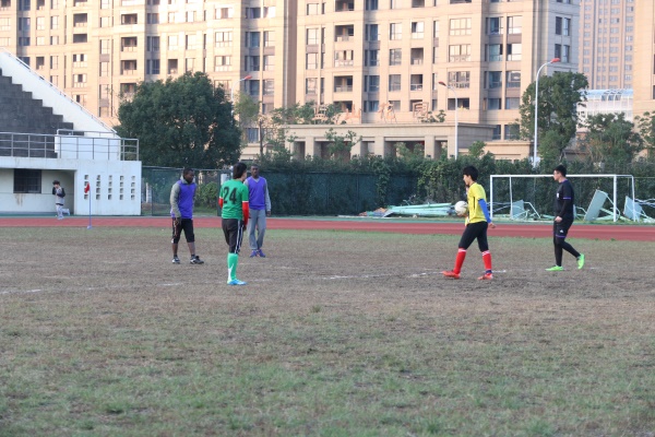 11月26日下午4点,在宁波职业技术学院的绿茵场上,正在进行着一场如火如荼的足球比赛。这场比赛对阵双方分别是海天学院和国际学院。两大学院运动员们的矫健身姿和一旁观众们的奋力呐喊,一起点燃了这个寒冷的午后。