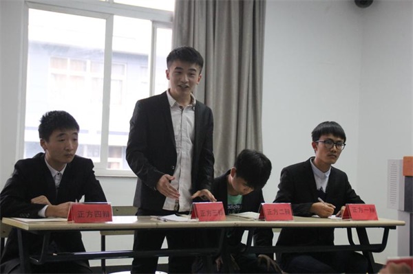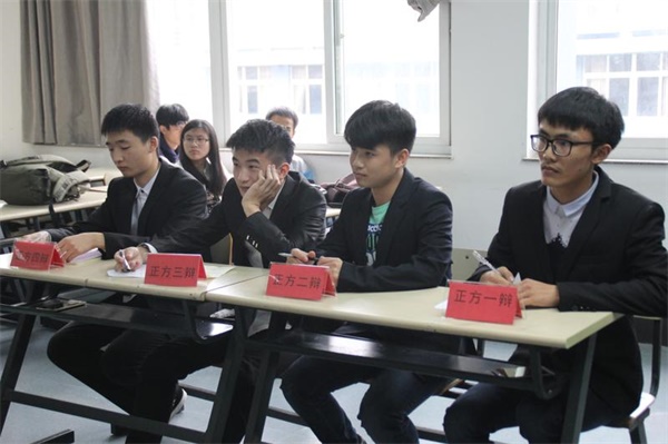 2015年11月26日中午12点10分,在2号楼409教室开展了一场思维与口才的比拼——海天分院与国际分院的辩论赛。本次评委由历届的最佳辩手担当,正反双方围绕“经济全球化是否会削弱国家主权”的辩题展开辩论。来自海天学院的四位辩手陈国宏、史宇臻、吴迪和吴书强持反方观点。