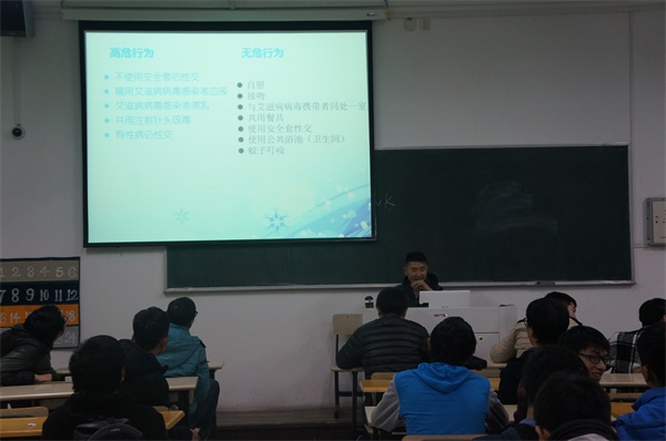 2015年12月21日晚18:00,于海天楼展开第二次艾滋病讲座。此次讲座由志愿者部刘建盛主持。