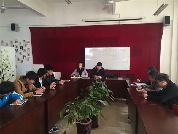 3月2日中午十二点,见习辅导员杜夏莹老师与海天媒体策划部全体九名成员及部长朱浩浩学长在海天楼会展中心召开部门会议。