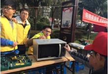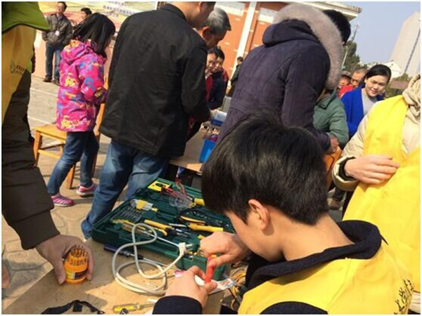 紧接着,志愿者们兵分两路,一队人在家电维修的站点等待需要帮助的居民,另一队人则进入到社区内部向路过的人宣传家电维修的活动。经过志愿者们的宣传,免费家电维修站点前很快涌现了很多需要维修家电的人,电饭煲,微波炉,热水壶等小家电摆满了桌子。志愿者们也耐心的进行检查、修理、调试、组装,经过细心维修,一部分家电又能正常使用了。志愿者们还向居民们讲解电器故障以及在今后使用中需要避免的操作方法。值得高兴的是居民们都纷纷称赞,对维修同学进行表扬。