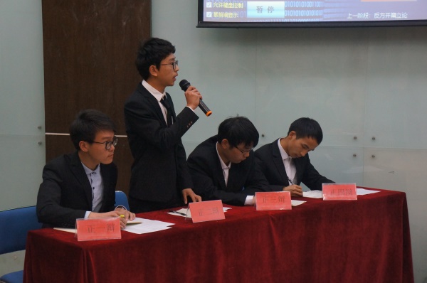 一个多小时后,双方选手辩论结束。随后四位评委对辩手们进行了精彩点评,在充分肯定了双方辩手实力的同时也指出了两方选手存在的一些不足。最后由主持人宣布反方辩手获胜,第一轮比赛至此结束。