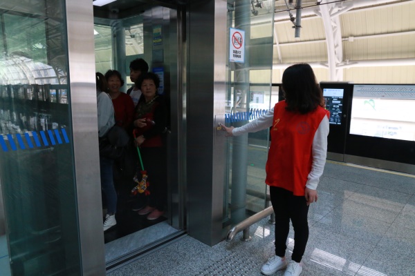 志愿者们分为五组分别指导乘客购票,为乘客引路,维持现场秩序,为乘客提供需要的帮助,他们身着红色马甲遍布整个大碶车站。他们为了能更好地帮助乘客,都会提前向车站人员请教不懂的问题。当遇到行动不便的老年人时,我们的志愿者会帮助老年人上客梯或者电梯。