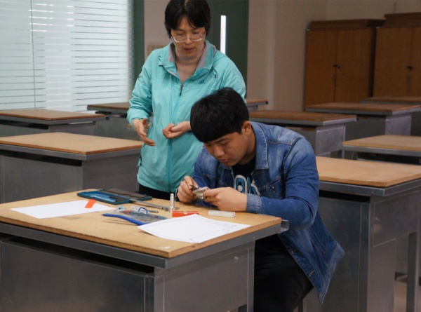 本次培训由冯桂香老师指导,绘图开始前,冯老师向大家讲解了如何测好零件,如何画好图。尽管在画图方面有一定基础,但同学并没有因此不认真学习,在场每一名学生都很仔细的聆听冯老师从基础开始讲解。