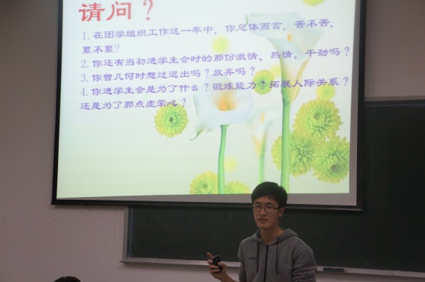 4月24日下午8点于海天学院514海天学院1507培训班开始第二次授课,本次授课老师是海天学院学生会主席金华剑。