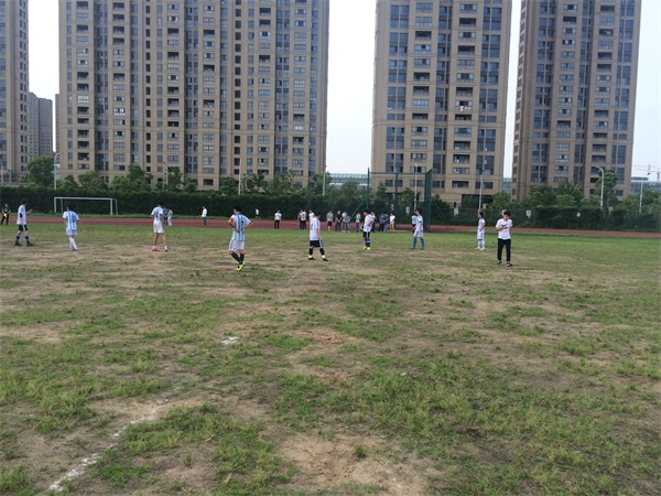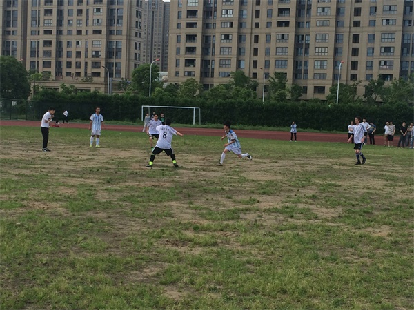 到场的有裁判主要是校足球队的队员以及双方的拉拉队。在比赛开始时双方你来我往,攻防交替,大约于5点15分时,化工学院首破球门拿下第一粒进球。海天的选手没有因为对手的先拔头筹而泄气,反而更加专注于比赛,在防守时一丝不苟,将球门护的严严实实。