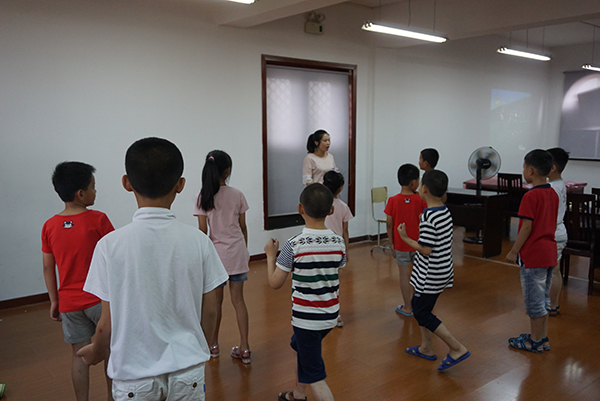 7月15日,海天学院“携手同心,海碶同行”大学生骨干暑期实践团的学生学以致用,将在学校学习的健美操带入“灵动”继峰暑期班支教活动中。