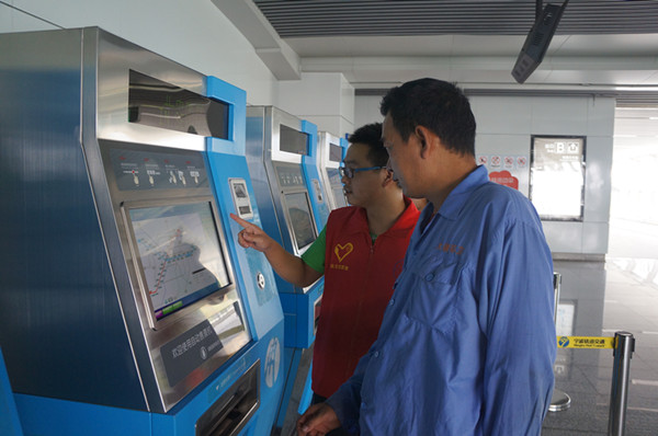 通过值班带队学生的介绍,我们对大碶站的大致结构,以及它的乘车流程,购票方式都有了了解。介绍完后,志愿活动正是开始了,两个人分别到售票机,站台,以及宣传台开展志愿服务。由于现在开通了地铁一号线,使得部分人不知道该如何乘车,当发现有我们的志愿者时,他们都会非常高兴的过来咨询,我们的志愿者也很耐心的给他们说明。还有很多时候会遇到不会用售票机买票的人,志愿者总是走到他们的边上,手把手的教他们。在宣传台的同学一边向大家倡导“文明乘车,安全出行”,一边帮大家指路,也会指导购票。到站台的有四名同学,他们在站台协助工作工作人员引导大家安全乘坐地铁。