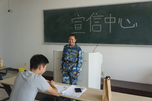 2016年9月25日中午,海天学院团委学生会招新活动在海天五楼举行,各部门对16级新生进行面试考核。