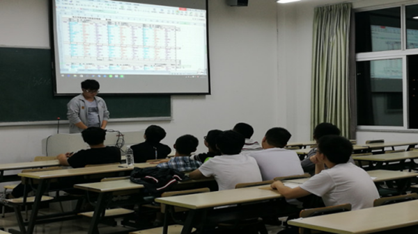 在会议开始前老前辈们幽默的向新人们介绍了自己,并针对在未来的工作中所会遇到的麻烦以及错误,做了详细的讲解和分析。最后为了第二天新生们的第一堂课,在会议结束后,带领新干事一起去对五楼的教室进行了全面整理,将未摆正的课桌椅的统一摆放,黑板讲台的清洁,给新生一个干净整洁的开始。