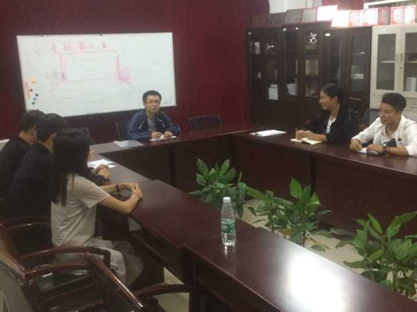 首先,学长向所有新生干事介绍了部门的具体情况,并对部门的日常工作及常规活动做了详细的介绍。接着,各位新生干事做了简单的自我介绍,并对其他各部门的职能做了简单的了解和分析。然后,前辈对各新生干事进行简单的分工和讲解。最后,由前辈带领新生干事进行了会议室整理。