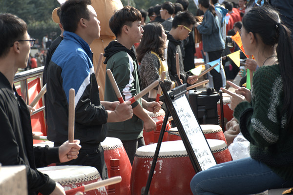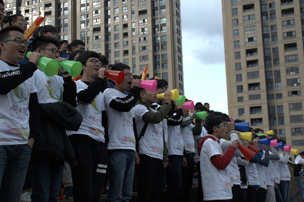 早在8点10分,啦啦队成员们便在操场的看台集合。在风采演绎导师王铖志愿者部的带领下开始彩排加油的口号。随着时间流逝,比赛即将开始。当听到第一声枪响,鼓手便奋力的挥舞着鼓槌,伴随着强而有力的鼓点声,“激情澎湃,海天不败;斗志昂扬,海天最强;扬帆掌舵,奋勇拼搏;看我海天;气势磅礴。海天英才,博大胸怀,追求卓越,继往开来,熠熠星辉,海天腾飞,英勇无畏,逐梦扬威!”这激昂的海天口号也随之响彻云霄。当海天学子矫健的身姿从看台下飞奔而过时,更是点燃了啦啦队员心中的火焰。三天的加油助威使得众多队员喊哑了嗓子,拍红了双手,但他们毫不在乎。因为他们知道只要能为运动员们加油鼓劲,付出的这一切都是值得的。
