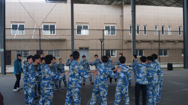 2016年12月11日,早上八点海天学院第二批素质拓展训练的同学们在风雨篮球场进行了集合,进行了热身操之后开始了维持一天的素质拓展训练。