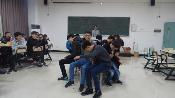 图为:班长团支书迎新聚会“抢板凳”现场