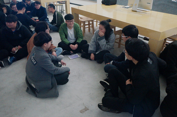 本次课程的主题是“团队合作”。赵诗怡向我们简单介绍了什么是“团队合作”、团队的组成以及它的重要性。她强调“一个团队由领导者、执行者、协调者等组成。但团队不是群体,群体是可能拥有共同的目标但是缺乏凝聚力协作性的组织”。为了让在场的学员更加明白团队的含义,赵诗怡让学员们现场分组组成一个个团队,并为自己的队伍选出队长、想口号,起队名等一应俱全,授课在轻松的氛围中逐渐接近尾声。