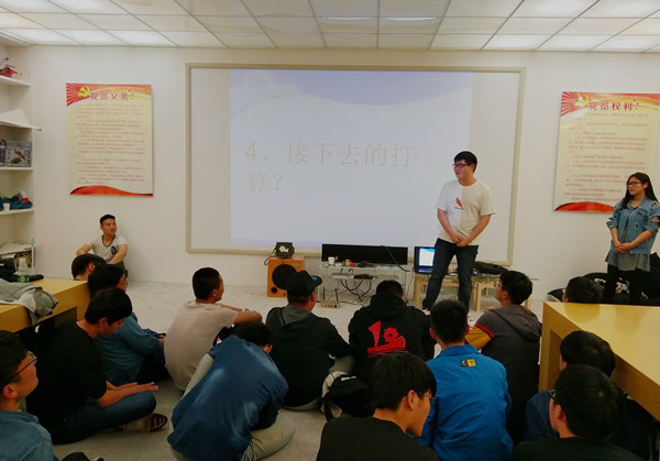 本次课程的主题为“自我定位”。首先,丁意玲向大家提出了四个问题“为什么会选择在团学工作”,“最初选择团学的目的是什么”,“对于现在的工作有什么想法”,“接下去的打算”。就四个问题向大家阐述了团学工作的意义所在,同时也了解到目前团学干事的工作状态也让同学们真正的剖析了自己,重新定位了团学中工作。