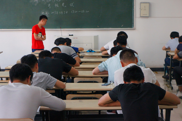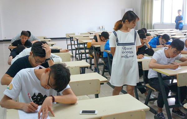 为检测半个学期以来教学效果和团学干事的学习水平,于5月7日傍晚五点二十分,在海天楼514和518教室分别设下两个考场,对海天学院1608级团学培训班干事进行了期中考核。本次考试由海天学院团委副书记蔡敏佳、学生会副主席兼大学生教学管理委员会主任刘旭涛、学生会副主席兼大学生校务管理委员会主任罗森科等监考。
