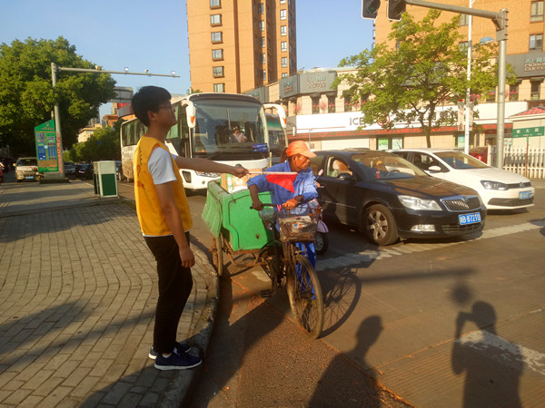 5月10日下午,宁职院海天学院的青年志愿者们走出校园,来到新大路与庐山东路的十字路口开展协助交通的志