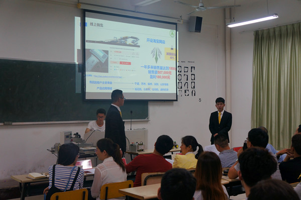 参加本次模拟答辩共有两组。第一组演讲的内容是“自动仪表控制器”。他们通过现场讲解和展示的方法,为评委们详细的介绍了自己所做产品,并用在淘宝上的销售量证明产品在小型企业的实用性。第二组演讲的内容是“现代水产养殖”。他们详细的为评委们描述了自己对“现代水产养殖”的见解,并通过数据分析为项目在实际应用中的可行性。答辩完后,评委们为参赛的同学们指出了他们在答辩过程中存在的种种问题,并为他们提出了改进的意见。