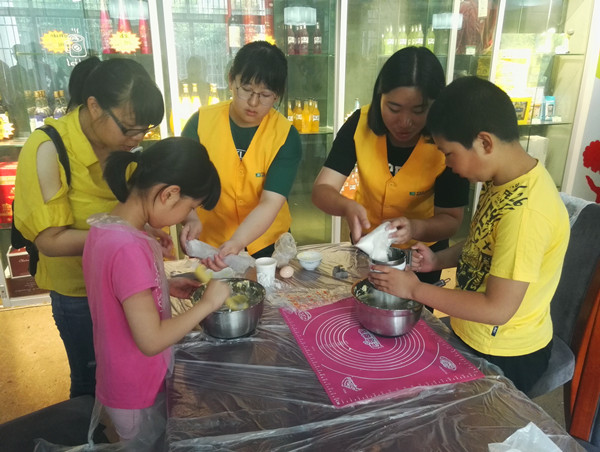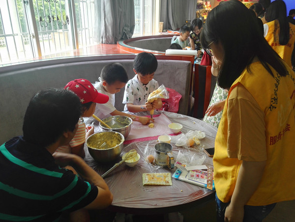 图为:机电(海天)学院“六一”亲子烘焙活动现场