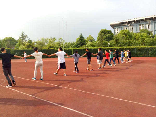 活动以必备的慢跑热身拉开序幕。紧接着干事们分成两个大组玩了“老鹰抓小鸡”、“红绿黄灯”“你说我猜”三个游戏。沉浸在游戏环节的干事们一扫困意,他们在游戏中认识彼此,熟悉彼此。一些部门的部长也一起融入了游戏环节,使游戏增强了趣味性,同时拉近了各部长与干事们的情谊。最后一个游戏“捕鱼”,部长们奋勇当前做了渔网,开始和干事们追逐。临近期末,一学期下来,干事们在这个培训班里积极参与,踊跃尝试,努力寻找并克服自己的不足之处,而每周的晨练也成为了一道亮丽的风景线。