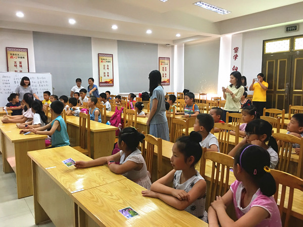为让小朋友了解催眠的益处以及了解其他地方的风俗习惯。于7月11日,太白社区开展了神奇的催眠与台湾风情的课程,课程由区实验小学的李琳老师和八位来自大碶图书馆的台湾老师给小朋友们上课,我院大学生志愿者傅巧玲负责小朋友们的作业辅导。