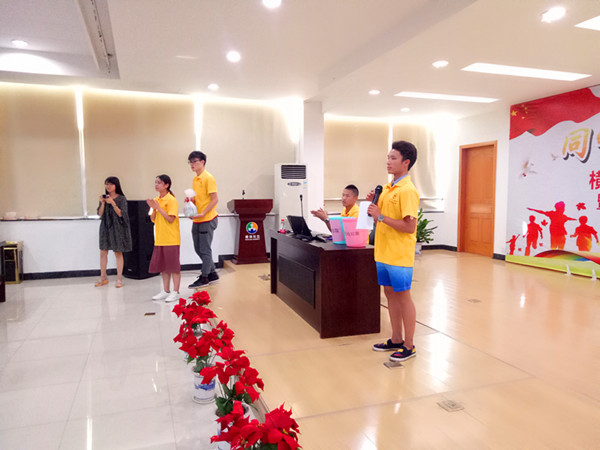 活动开始,在同学们的热烈欢迎下,环卫工人依次在社区工作人员和志愿者们安排下入座。随后由小朋友们为环卫工人擦汗和送饮料的环节。夏日送清凉环节结束后,我们的环卫工人代表在我院志愿者的邀请下为小朋友们讲解垃圾分类的知识,其中讲解到电池、饮料瓶、厨房垃圾等应该放在相应的垃圾桶。同时希望小朋友们能掌握这些小知识,并且运用在自己的生活上。最后由假日学校的6位小朋友为环卫工人们带来一首《劳动最光荣》结束本次活动。