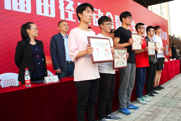 随着各系参赛代表队,运动员丶裁判员的有序进场,闭幕式正式开始。主席台上,正校级党委委员张健致闭幕词。他向在各项比赛中顽强拼搏取得优异成绩的代表队与运动员们表示热烈祝贺,感谢本届运动会的裁判员及大会工作人员的付出和努力。此外今年我们机电工程学院获的奖项也是非常的多,在个人成绩中,模具设计代表队陈根、李旭东,设维机制代表队厉以铖,破男子3000米校运会记录。在团体成绩中,模具设计代表队以136分夺得“男子团体第一名”,设维机制紧随其后。这些运动健儿们为我们机电工程学院拿下了巨大的荣耀。