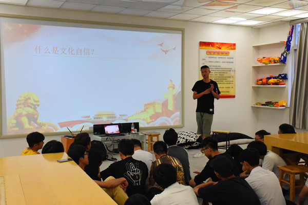 本次团学培训班顾铭扬学长跟团学干事们讲了一堂关于“学习十九大精神,坚定文化自信,传承传统文化”的课,结合自己的生活经验,给同学们分享了一些从前当兵的经历,以及退伍后在学校工作的经历。