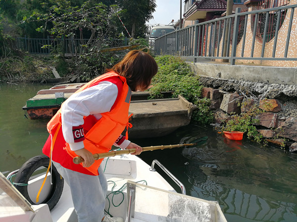 “河长助理”一方面积极参加各项亲水、护水、治水等公益活动;另一方面则为常态化巡河。在巡河叔叔帮助下,志愿者们穿戴救生衣完毕后便开始整顿岩河河面垃圾。一眼望去河面上看着很干净但随着叔叔将快艇靠近一个白色垃圾袋时才发现这条河藏污纳垢,志愿者们整装待发,将看似干净的河面进行一一巡查整顿。