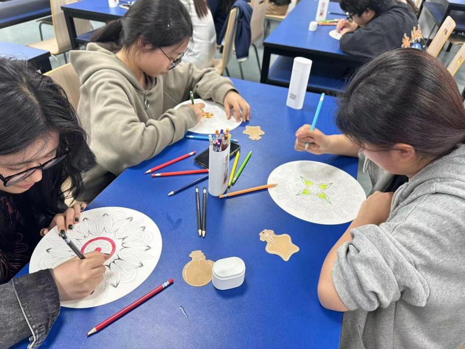 2024年4月22日,机电学子汇聚在海天楼201教室开展了一场“心语心愿”涂鸦绘画活动,同学们用色彩斑斓的画笔,在秘密花园的绿叶里沉淀心中的浮躁与烦恼,在曼陀罗的洁白花瓣上描绘心中的美好和希望。