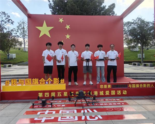 活动当天,学生党员们早早来到区政府广场主会场,与数十位飞友、市民共同见证庄严的无人机升旗仪式。当无人机携带着巨幅五星红旗缓缓升起,现场响起激昂的《义勇军进行曲》,全体人员肃立高唱国歌,场面庄重而感人。随后,同学们在国旗打卡点前驻足停留,手持国旗,面带自豪的笑容,与鲜艳的五星红旗合影留念,记录下这具有特殊意义的时刻。