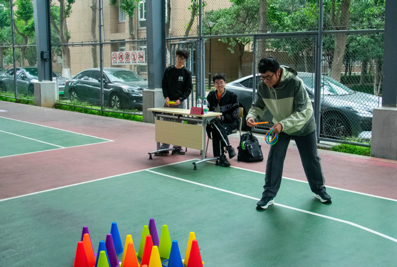 游园会现场,游戏项目精彩纷呈。在搬运乒乓球区域,同学们小心翼翼地手持球拍,眼睛紧紧盯着球,努力保持平衡,现场不时传来因球掉落而发出的懊恼声和成功到达终点后的欢呼声;活力套圈处,彩圈碰撞的清脆声响与加油声交织,每一次投掷都是对专注与耐心的考验;击打保龄球处,大家摆出各种姿势,奋力一掷,看着保龄球瓶纷纷倒下,脸上洋溢着胜利的喜悦;“超低空飞行”中,参与者们屏气凝神,穿越低空障碍,现场气氛紧张又刺激......