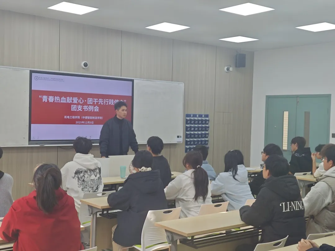 2025年12月11日,机电工程学院(中德智能制造学院)在海天楼505教室召开“青春热血献爱心·团干先行践使命”全体团支书例会,会议围绕无偿献血常识普及、献血活动组织动员及思政微课大赛说明等内容展开,为后续系列活动的顺利推进奠定了坚实基础。