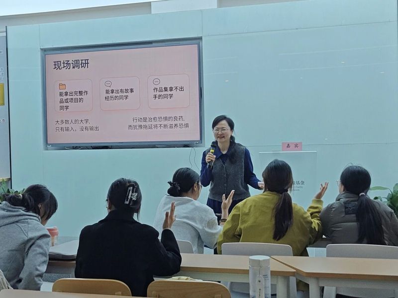 讲座尾声,徐老师通过真实案例对比了“仅持成绩单”与“拥有作品集”两类学生的求职差异,具象化展示了作品集在职业竞争中的核心优势,并提炼出其“一致性、真实性、故事性、价值感”四大核心要素,指出作品集是大学阶段“投入产出比最高的自我投资”。她鼓励同学们即刻行动:保存“作品集第一页”为壁纸、关注同领域创作者、下周完成第一个微作品。她以“成绩单记录你从哪里来,作品集记录你能走到哪里去”作结,勉励大家以渺小启程,以伟大结束,在大学里书写属于自己的精彩作品集。