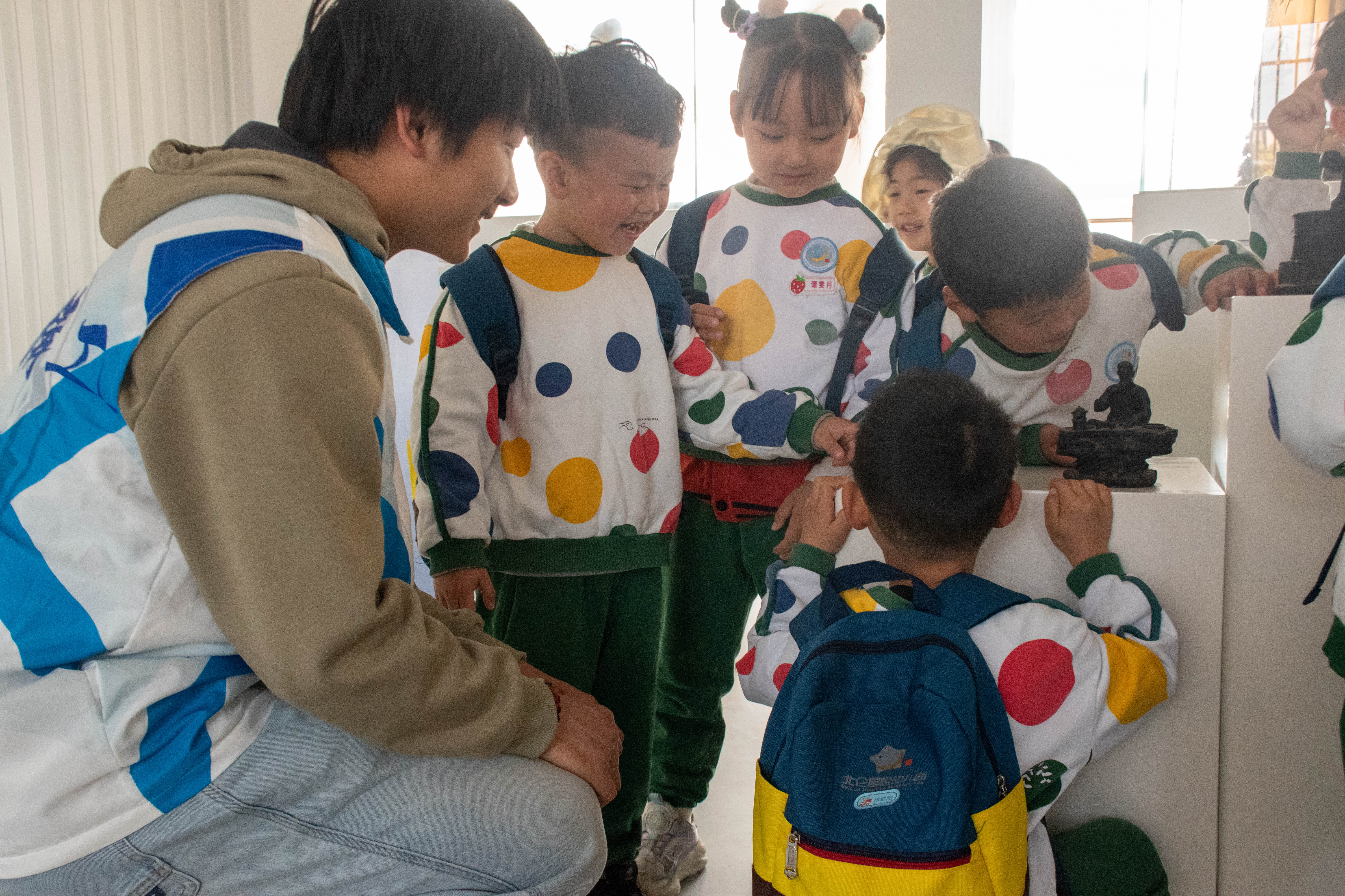 活动开篇聚焦民族文化传承,孩子们走进学校树人中心的米娜工作室,近距离领略各民族文化魅力。学院劳育团队成员生动讲述展品背后的文化故事与工艺传承,带领孩子们触摸民族工艺智慧。在“像石榴籽一样紧紧抱在一起”互动环节中,孩子们手拉手围成同心圆,以纯真行动践行民族团结理念,让“劳育铸魂、文化润心”的育人理念落地生根。