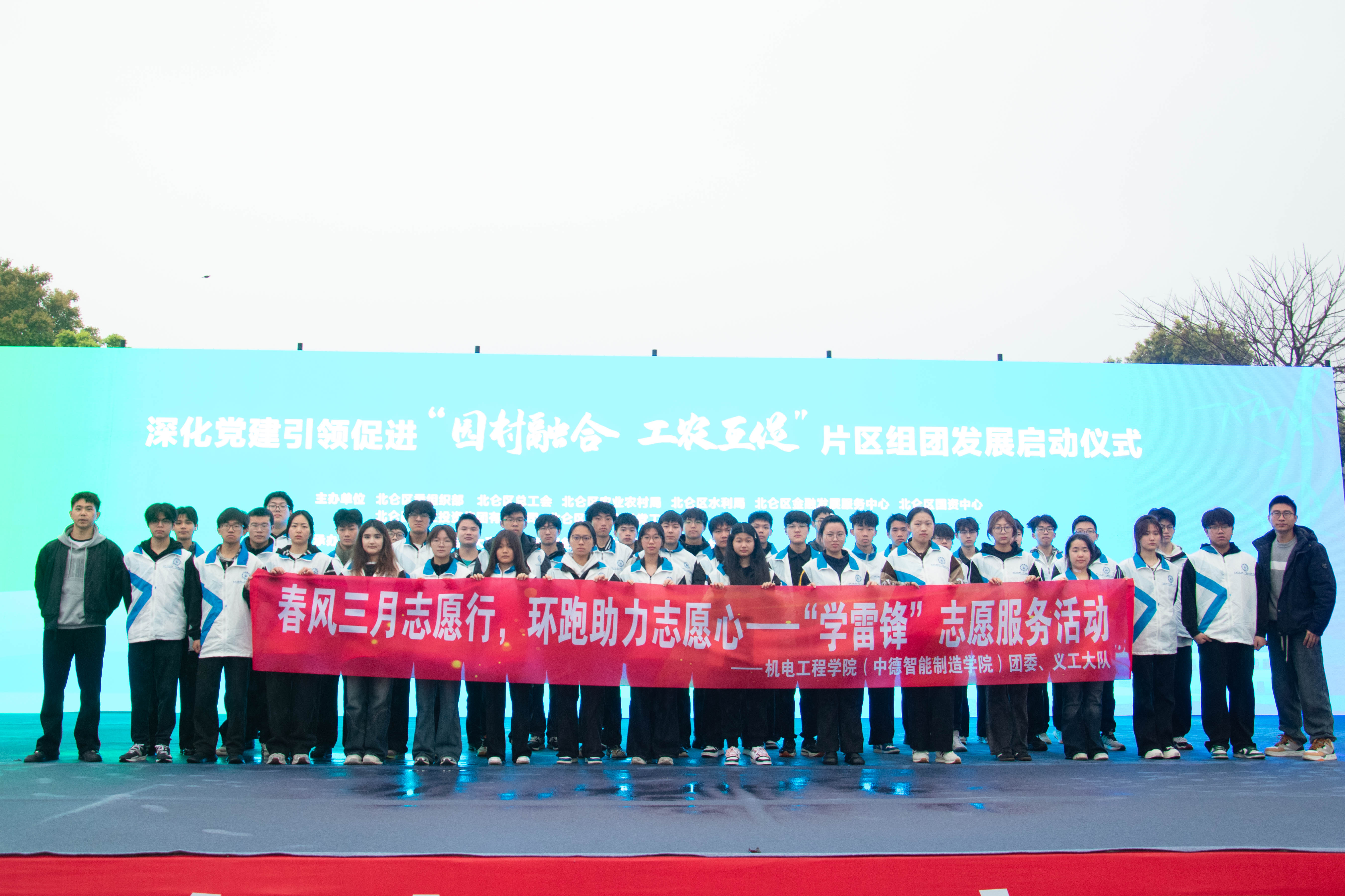 三月春风拂面暖,雷锋精神践于行。2026年3月27日,北仑区大碶街道灵峰工业社区“产业工人环园跑”活动火热开赛,数百名跑者齐聚园区,以奔跑挥洒活力,用脚步丈量社区。机电工程学院(中德智能制造学院)50名青年志愿者在学院老师带领下,全程参与赛事各项志愿服务。