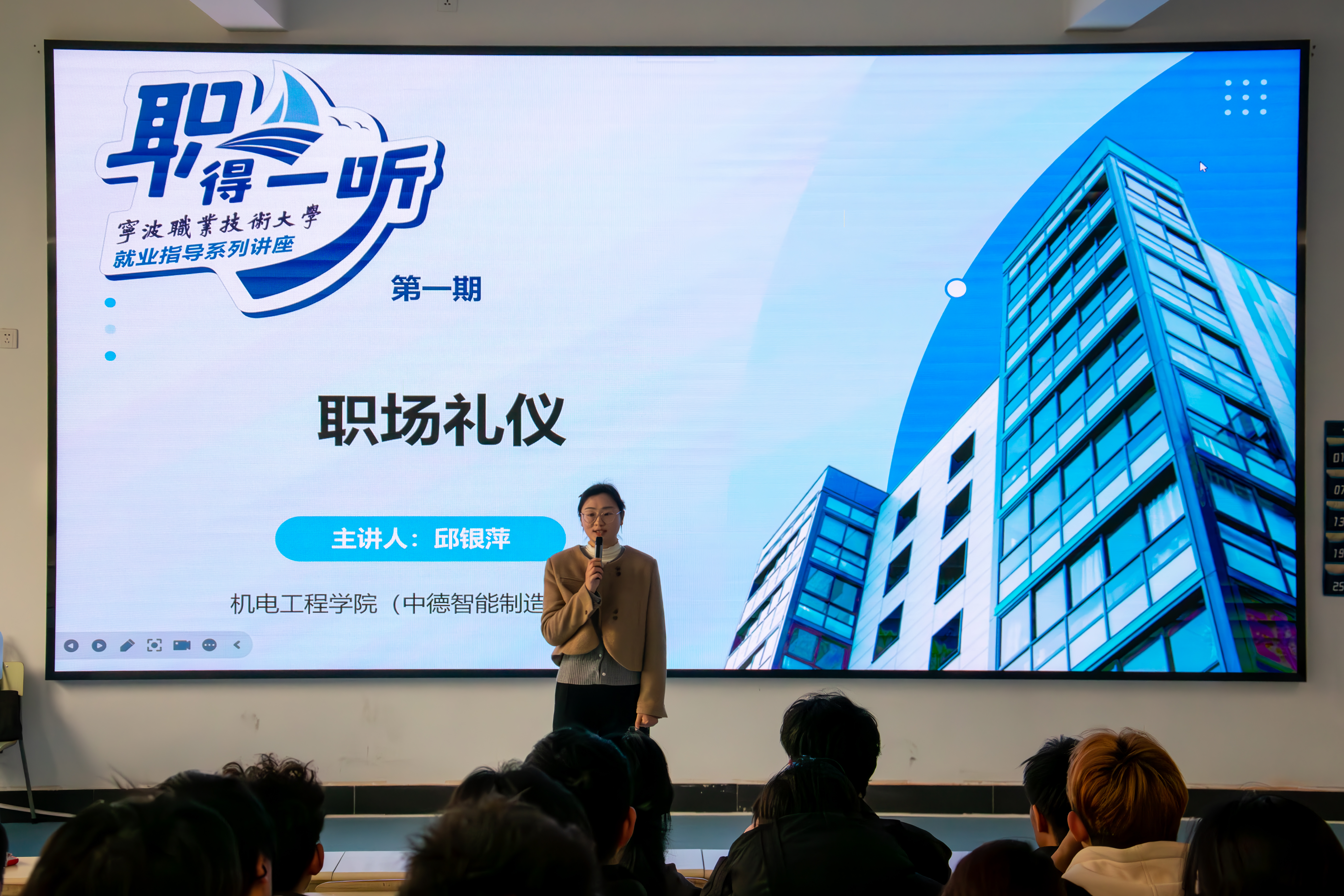 为切实提升学生职业素养与就业竞争力,搭建校企协同育人桥梁,3月26日,机电工程学院(中德智能制造学院)在2401教室举办职场礼仪专题讲座。本次讲座特邀海天塑机集团人资部校企合作经理邱银萍主讲,学院近100名学生参加本次学习活动。